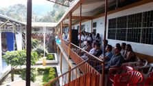 El evento se desarrolló de la siguiente manera, los actos protocolo se dieron en la parte central del segundo piso, ubicando a algunos padres de familia a los lados de este, en cuanto a los actos culturales se ubicó una mesa en la parte lateral de la cancha donde estaban los encargados de dirigir cada uno de los puntos que se irían desarrollando durante la jornada académica.
